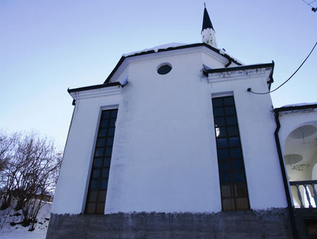 U džamiju se ulazi sa terase kroz velika jednokrilna vrata. Terasa je obložena kamenim pločama i zaštićena eloksiranom ogradom (koju je donirao ) i do nje se uspinje betonskim stepenicama.