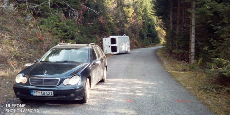 Vozač kombija stranih regisatrskih oznaka je u jednoj od krivina u Turijaku izgubio kontrolu i prevrnuo se.