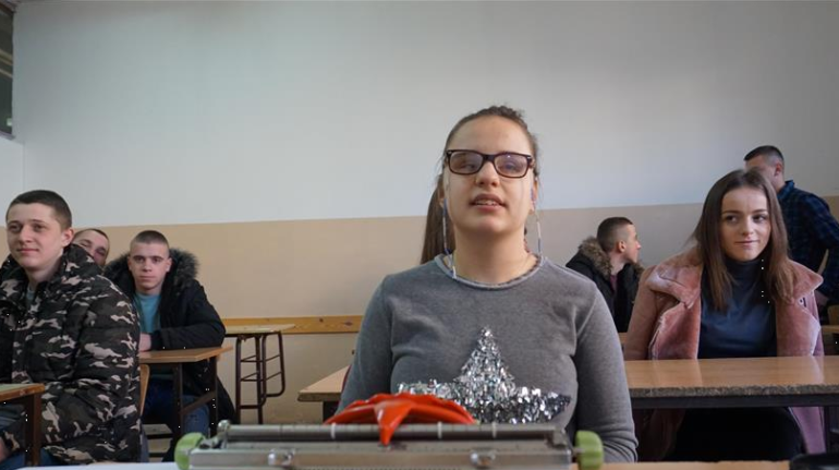 Dinu smo posetili u Tehničkoj školi. Sa svojim drugarima iz razreda sumirala je utiske o ostvarenim rezultatima u prvom polugodištu školske godine. Imala se čime i pohvaliti, odličan uspeh i petice iz svih dvanaest predmeta.