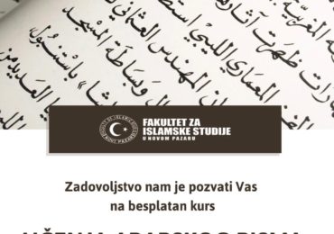 Vijeće studenata Fakulteta za Islamske studije u Novom Pazaru organizira besplatan kurs učenja arapskog pisma za muškarce i žene svih uzrasta.Studenti Fakulteta za Islamske studije pozivaju sve zai…