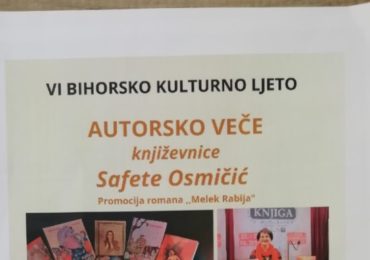 U petak, 20, septembra sa početkom u 18 časova, u Centru za kulturu Petnjica, održaće se autorsko veče književnice Safete Osmičić, u sklopu kojeg će biti promocija romana “Melek Rablja”. Promoteri…