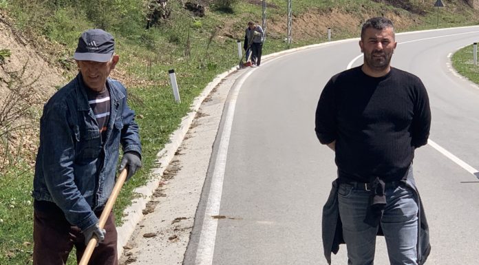 Radnici komunalnog preduzeća iskoristili su lijepo vrijeme i obavljaju poslove čišćenja duž magistralnog puta.