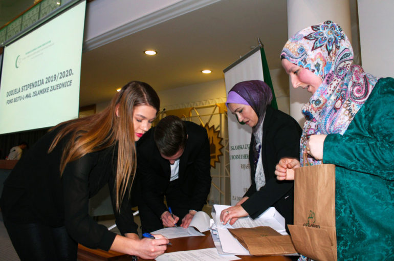Sarajevo, 18. JANUARA (MINA) – Danas je u Gazi Husrev-begovoj biblioteci u Sarajevu učenicima i studentima uručeno 208 ugovora za stipendije iz Fonda Bejtu-l-mal Rijaseta Islamske zajednice u Bosni i Hercegovini. Već šestu godinu zaredom Ured za društvenu brigu raspisuje konkurs za dodjelu stipendija učenicima srednjih škola i studentima.