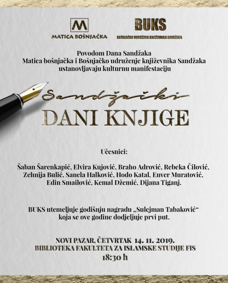 Večeras promocija u Pazaru – Počinje kulturna manifestacija “Sandžački dani knjige”