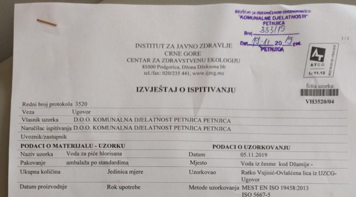 Komunalno preduzeće opštine Petnjica, redovno radi analizu vode za piće sa vodovoda Popča.