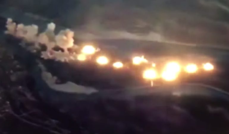 Na video snimku koji je objavila vojska mogle su se vidjeti ogromne eksplozije koje nalikuju na gljivu, a čini se da je prilikom bombardiranja izvedena tehnika poznata kao ”tepih”.