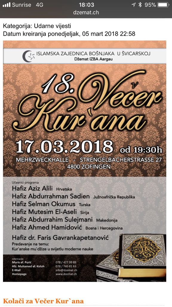Bihor Petnjica Predivno Veče Kur`ana Časnog u Švicarskoj-Zoffingen